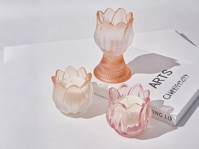 5. دارنده شمع شیشه ای: گزینه های شیشه ای معتدل با لهجه های طلایی/نقره ای برای تنظیمات لوکس.