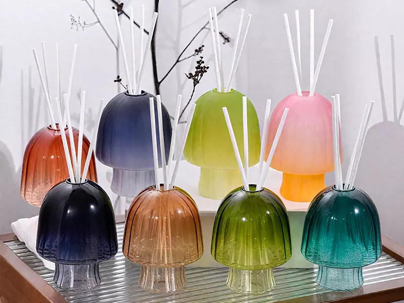4. دیفیوزر: دیفیوزرهای عطر با پایه های دیفیوزر شیشه ای براق.