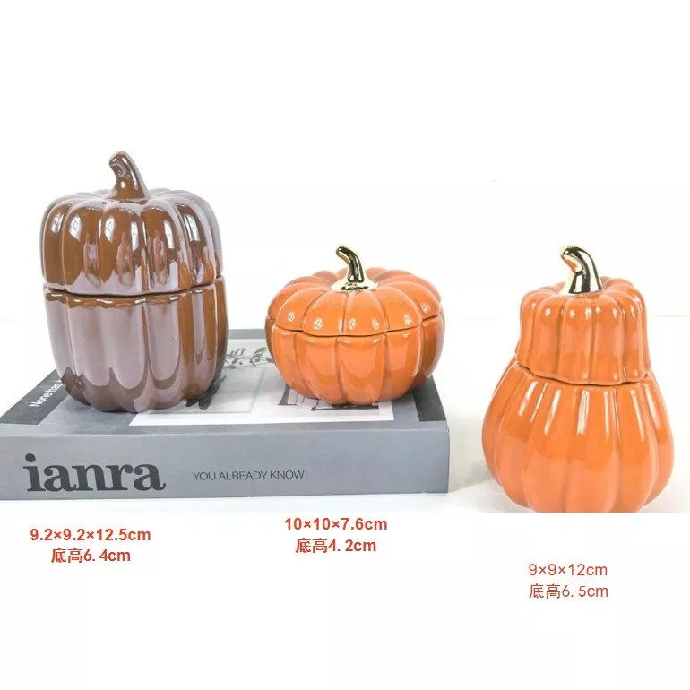 زیور آلات سرامیکی کدو تنبل هالووین: کوزه ها برای تکرار رنگ طبیعی کدو تنبل واقع بینانه و هنری ساخته شده اند. کوزه ها به رنگ نارنجی قهوه ای تیره و روشن آمده اند و رنگ طبیعی کدو تنبل را تقلید می کنند و دارای یک درب فلزی و دستگیره برای یک پایان تصفیه شده و چشم نواز هستند.